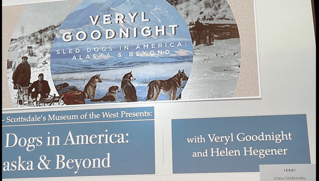 I wrote a few posts on Facebook sharing photos from wherever I was at the time with my family and friends, and two on SubStack, one last August and another in January, when I shared the reason for my trip—a presentation on the history of sled dogs with my dear friend and artist, Veryl Goodnight, for the Western Spirit Museum of the West in Scottsdale, Arizona. Three presentations, actually, and it was an absolutely splendid adventure in every respect! The post just before this one was written only a couple of weeks before our museum presentations last year. It’s been that long since I’ve written anything here.
